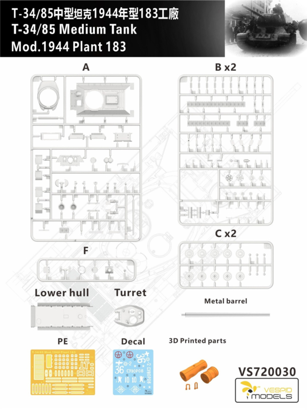 SKU: VS720030 Go back to overviewVespid | 720030 | T-34/85 Mod.1944 Plant 183 | 1:72