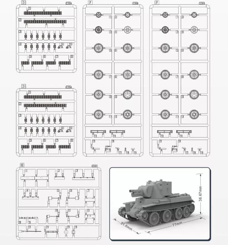 Plastic model kit, glue and paint are not included. What is included: